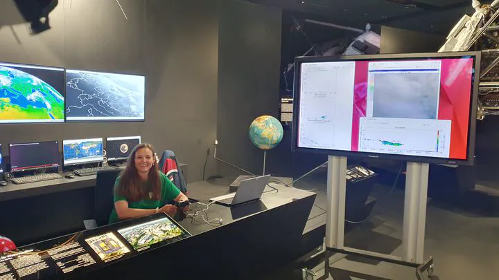 The setting was ideal: inside the satellite exhibit’s control module, we had the opportunity to speak with and inspire numerous visitors. Using a PlayStation controller, they could steer the radar in any direction, guided by a live webcam feed mounted on the system. At the same time, we displayed and explained real-time radar measurements of the clouds above.